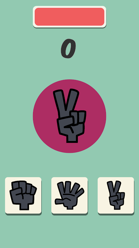 The rule is super simple : Scissors beats Paper, Paper beats Rock and Rock beats Scissors. You'll get one point for each correct response. Try to respond promptly, set a record and share it with your friends !
