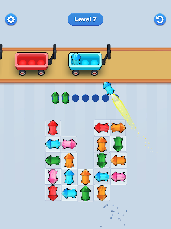 - When all the rockets are matched, you pass the level.