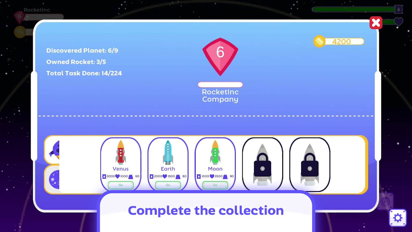 Hundreds of mission ready to be completed, 5 different rocket types and 9 amazing planet will feel you sailing on the universe.🪐