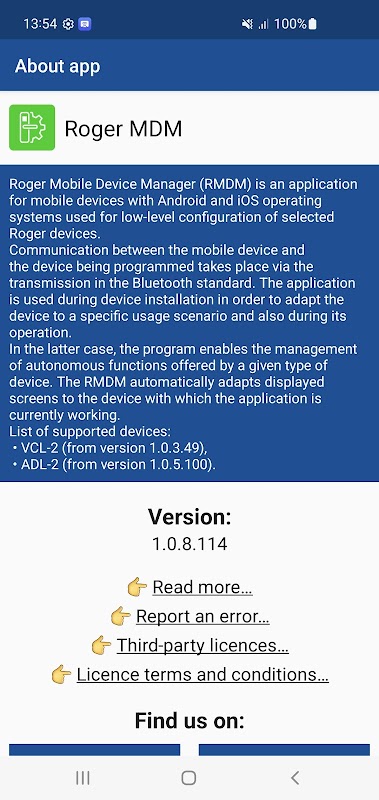 Roger Mobile Device Manager (RMDM) is an application for mobile devices with Android and iOS operating systems used for low-level configuration of selected Roger devices.