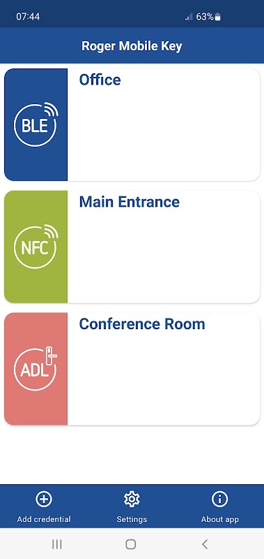 Roger Mobile Key is an app for mobile device which enables user identification in RACS 5 access control system and RCP Master 3 Time & Attendance software. The transmission between app and terminal can be conducted through BLE (Bluetooth), NFC or QR code displayed on mobile device screen. In case of BLE identification the mobile device can communicate in a distance of a few meters so this method can be used at driveways and gates to avoid user stepping out of the car for the purpose of identification.