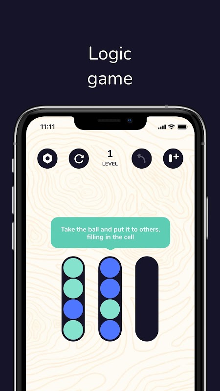 Play levels with the pleasant soundtrack moving balls between capsules. Eventual goal is to place all balls in the capsules in accordance with the color. One capsule for one color.