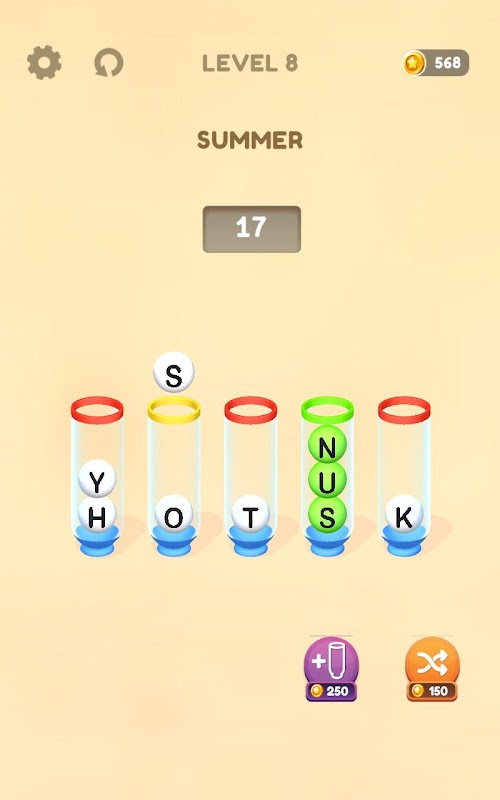 You must put the scattered letters in the bottles in the right order to form words.