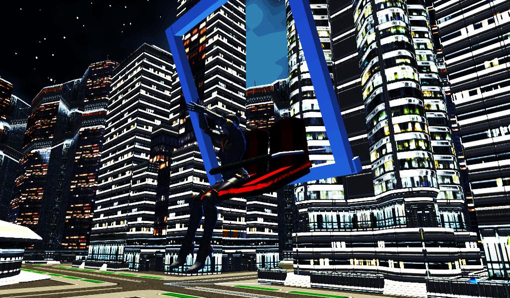 Observe stereoscopic city in this simulation attraction like roller coaster VR