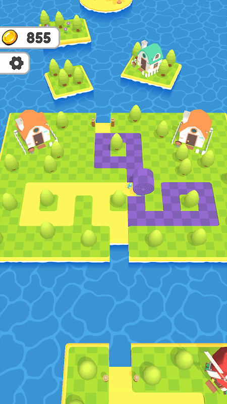 Escape the maze islands by building bridges and reach the treasure at the end!