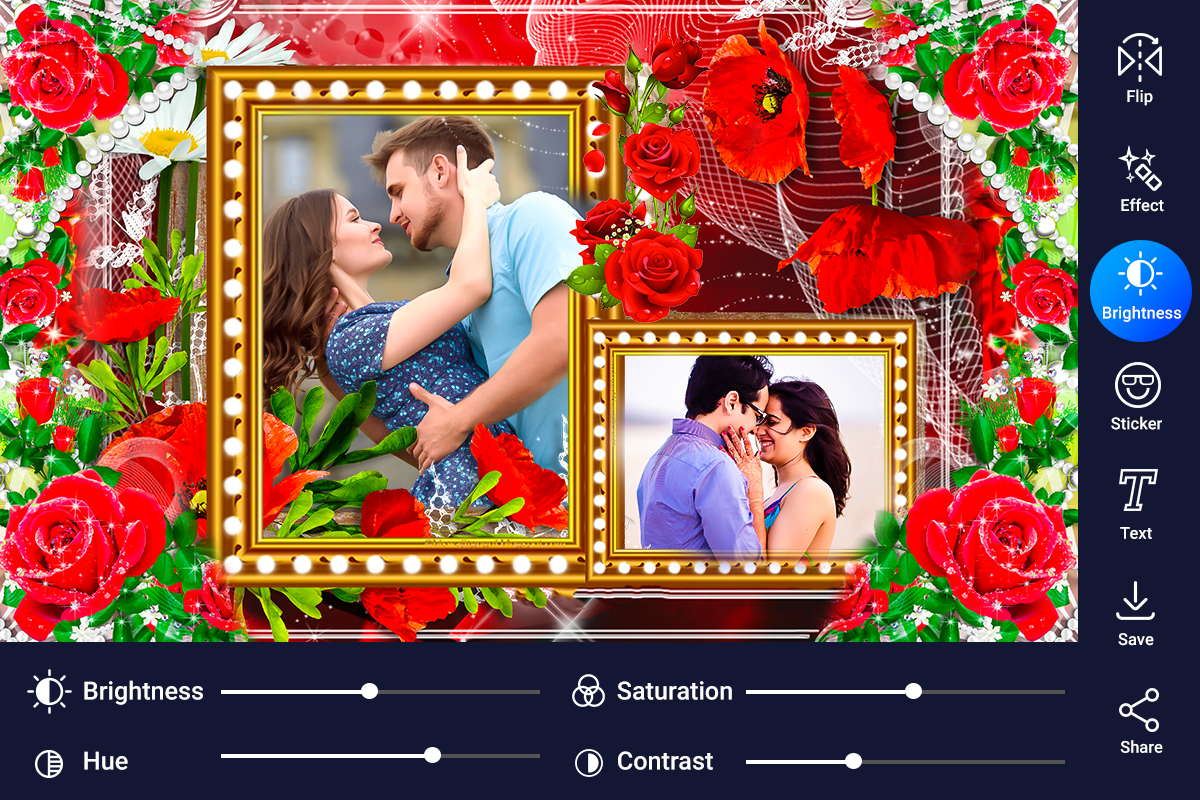 Use this Love and romantic Photo frames to create Love Photo Collages and add flower, love stickers to decorate it with your love and make it a beautiful memories with your love.