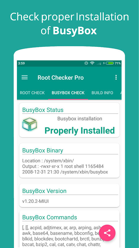Along with that, root checker also checks the system for busybox installation and also provides the user some basic info on why rooting their device may or may not be beneficial for them.