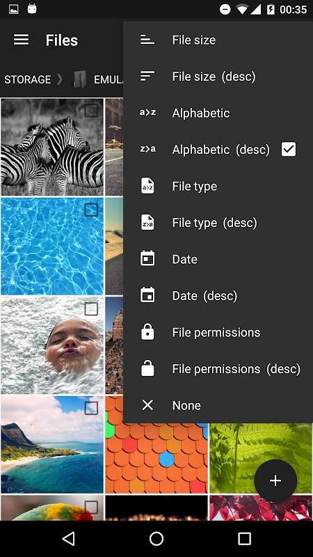 • Show list of files with thumbnails for images, video and apk.