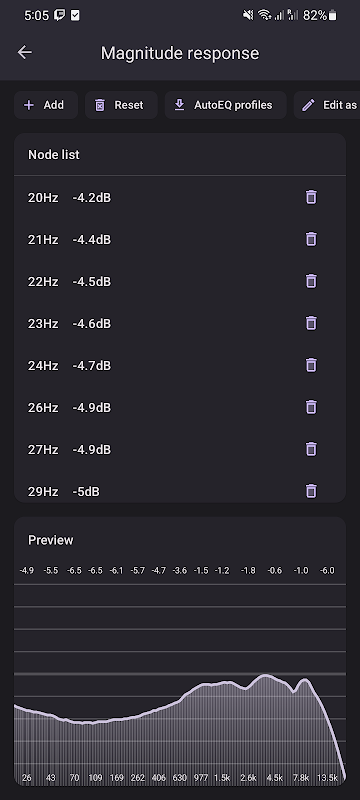 Additionally, this app integrates directly with AutoEQ. Using AutoEQ integration, you can search and import frequency responses that aim to correct your headphone to a neutral sound. Go to 'Arbitrary response equalizer > Magnitude response > AutoEQ profiles' to get started.