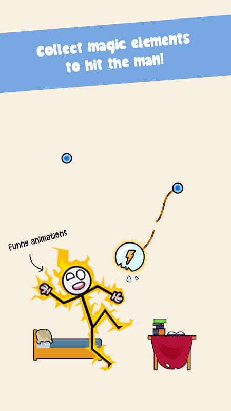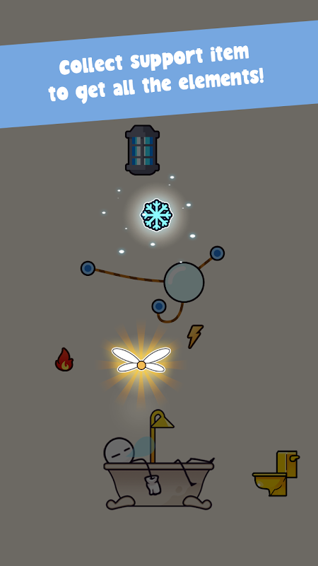 Your mission is to cut the rope and collect elements, for example: Fire, Ice, Lightning and bring them to the Stickman.