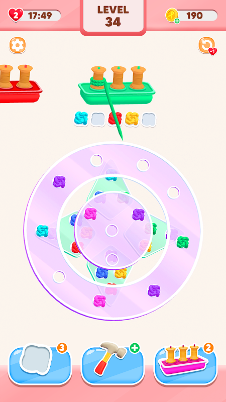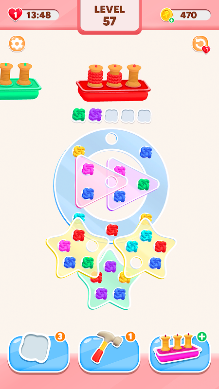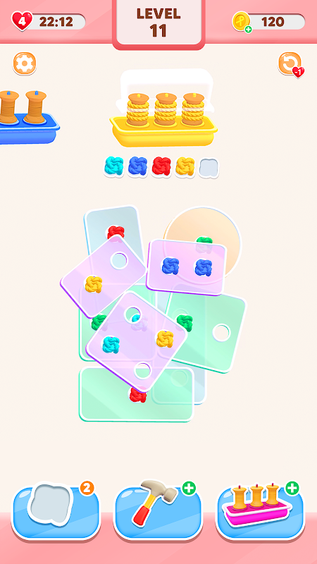 Dive into the fun with Rope Jam! Untangle colorful knots on solid pieces and match them with bobbin boxes at the top. Solve each tricky puzzle using physics, watch the pieces drop, and clear the screen. Test your skills and enjoy endless knot-tying challenges!