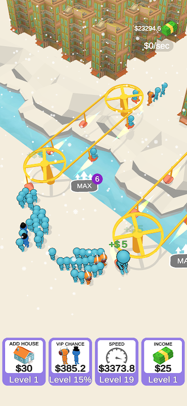 Build ropeway platforms to transport people, buy and merge houses to get more customers, purchase more seats, invest in businesses that grant you passive income. Advance through new & different levels. Many things to do in this satisfying idle merge game!