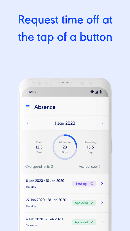 - Request time off and see your remaining holiday balance