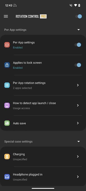 - Per-App Orientation Settings: Used to detect the launch and closure of specified applications to automatically apply the designated orientation settings for each app.
