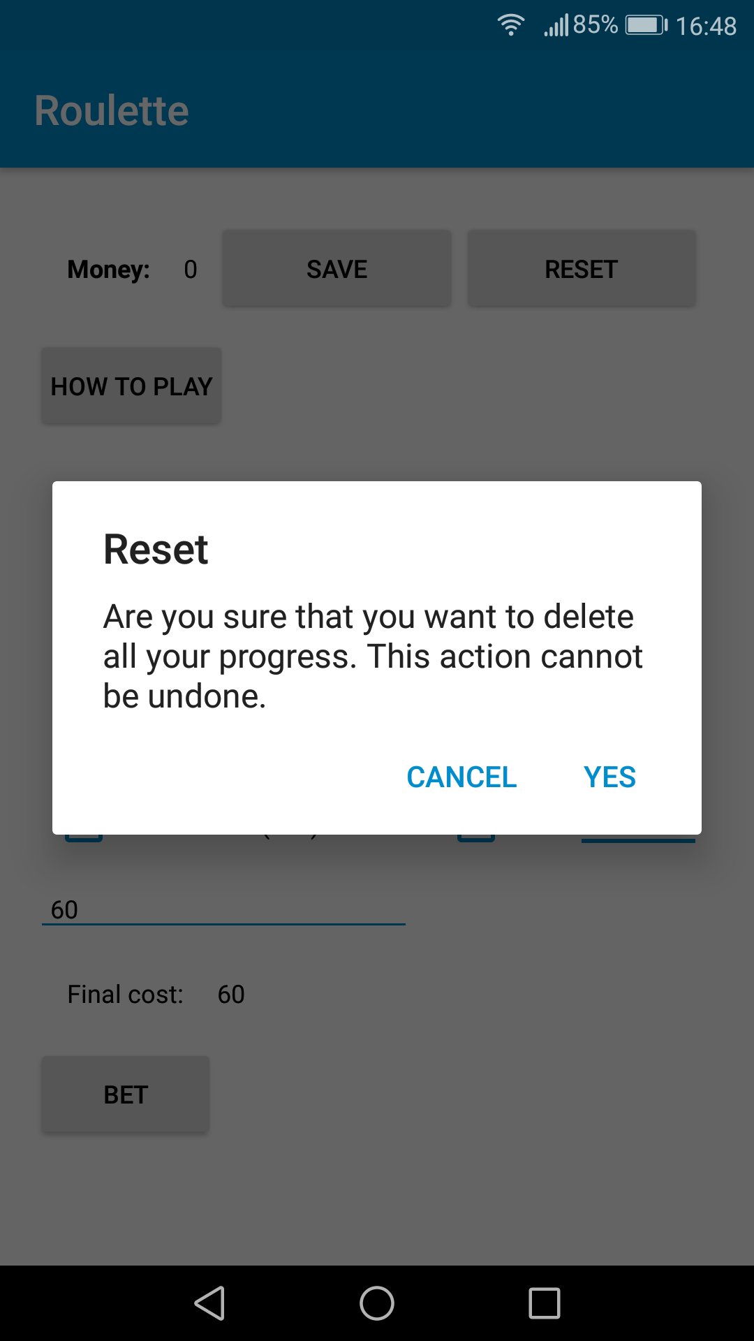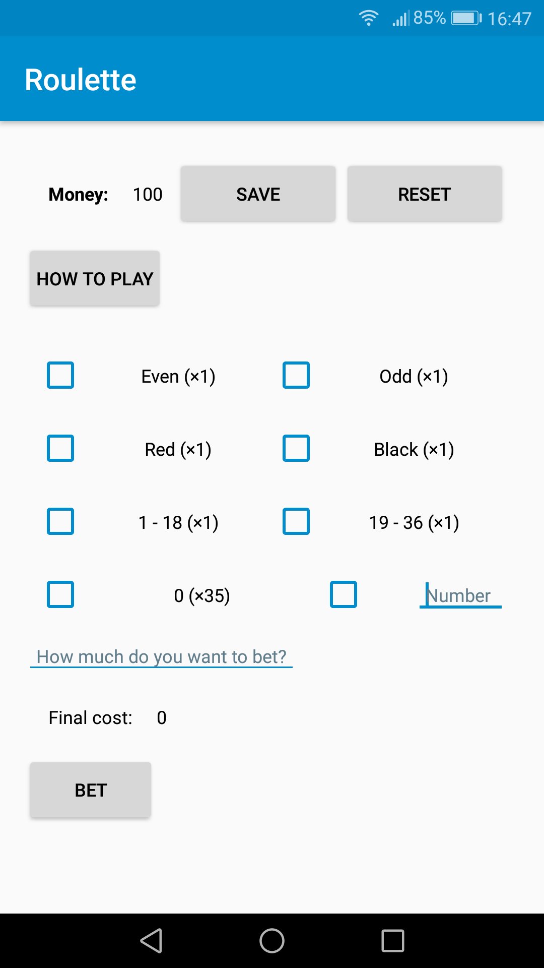 Select your betting and then start playing. Do not lose all your money! Remember to save and reset the game if you don't have money anymore.