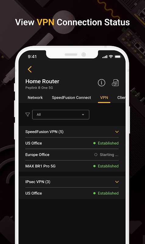 - SpeedFusion Connect and VPN connection status