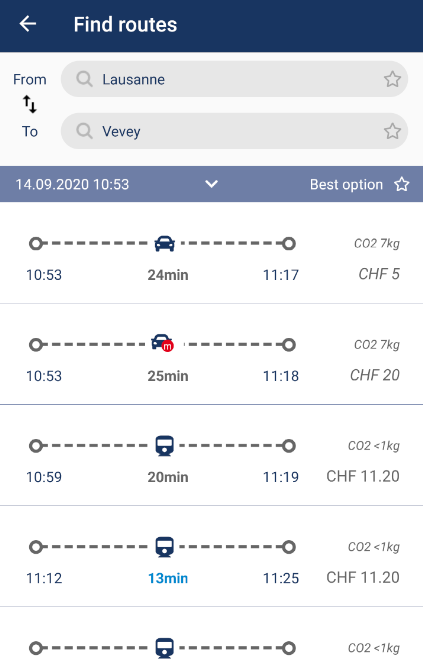In a single search, routeRANK's patent-pending technology finds and ranks the best possible travel routes in a single view on one screen, allowing users to sort them according to their priorities such as price, travel time and CO2 emissions.