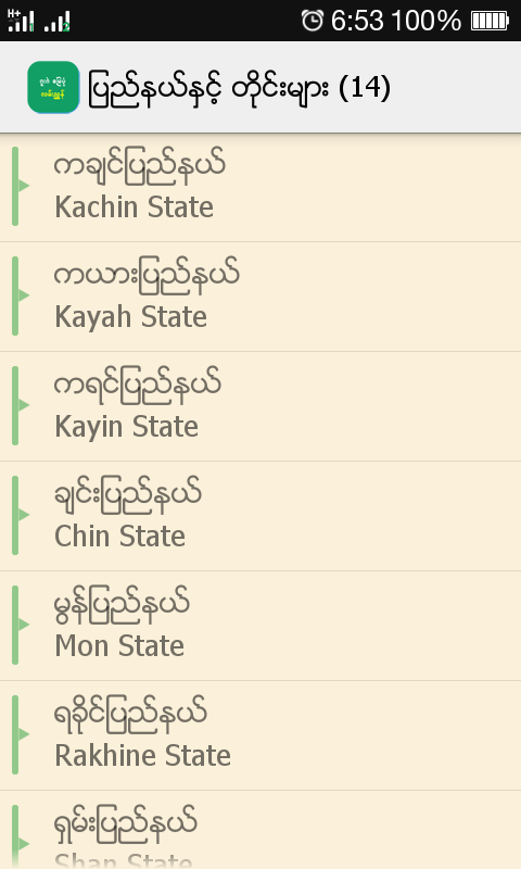It has a list of cities in Myanmar so that you can have them on the fly.