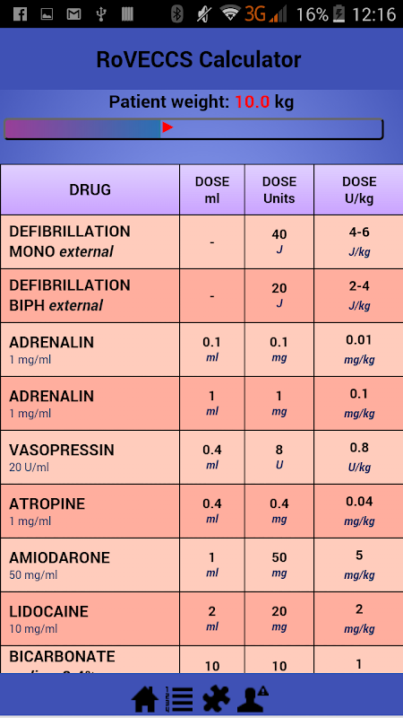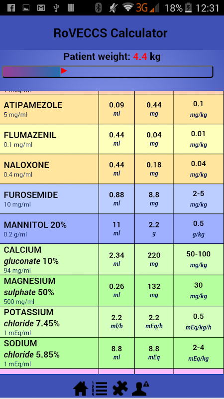 The application is intended for practicing veterinarians specializing in companion animals and allows users to perform fast and accurate calculation of the required dosage administration of emergency medication for each patient, depending on body weight. Emergency medication is displayed based on the therapeutic effect and is presented as concentration available on the Romanian and European medical market. It is sorted into vertically columns, doses resulting from the use being directly displayed in milliliters (ml). In cases where doses are expressed as a range (eg. 50-100 mg/kg), the resulting calculations are made automatically based on the minimum dose. This simple and effective software application is provided with a cursor for selecting body mass in units of 1 kg between 1-60 kg, and provides the safety of administration of adequate doses, thus contributing to the implementation of optimal therapeutic management of patients with critical conditions.
