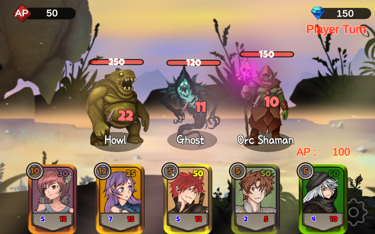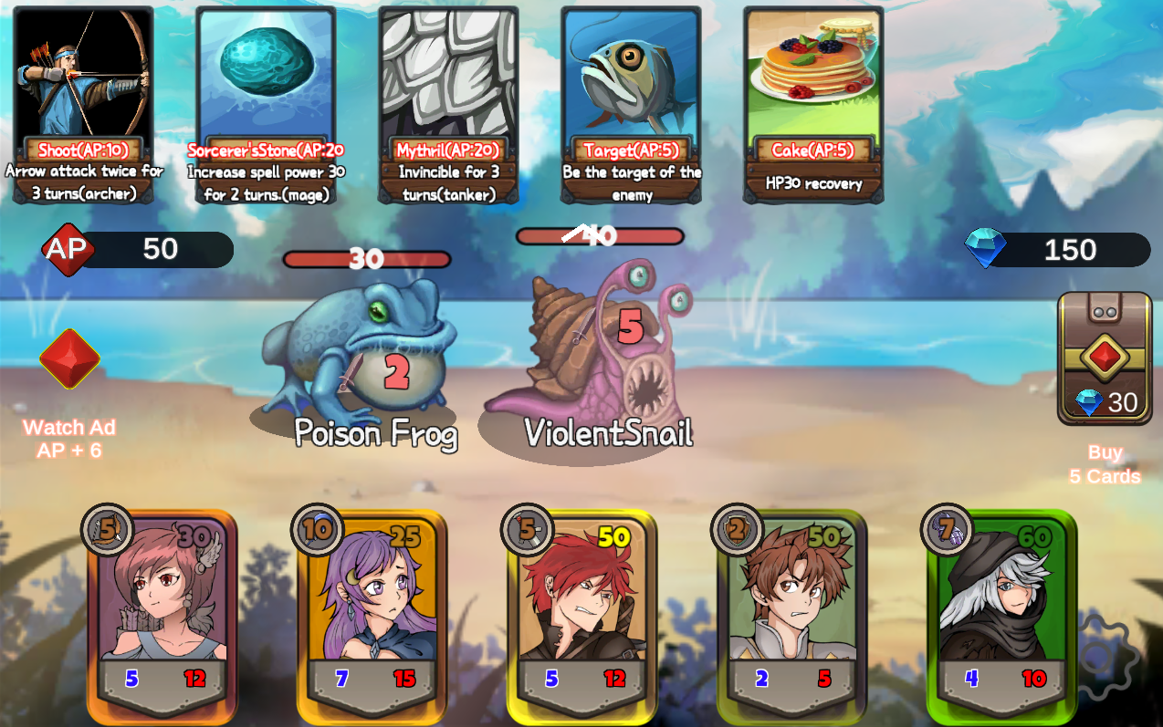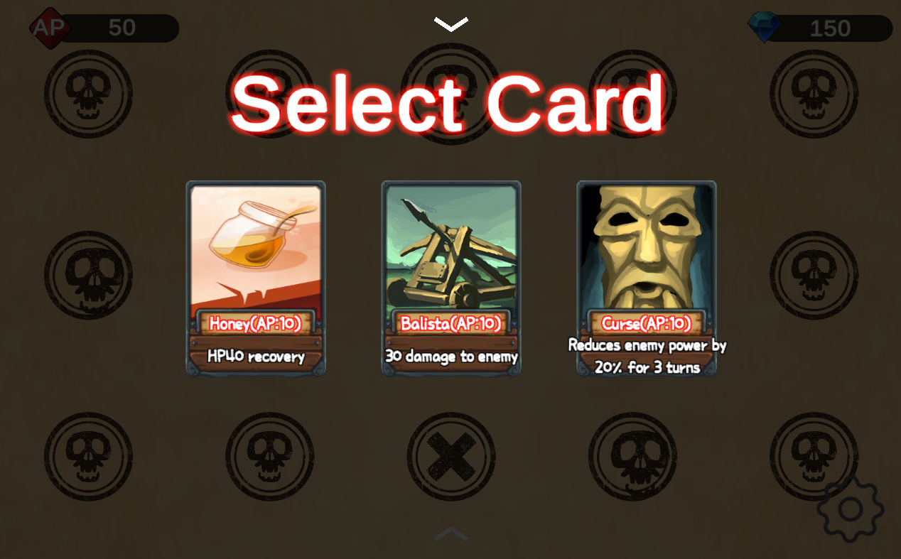 Deck building card game.Defeat a devil using various skill and knights cards.