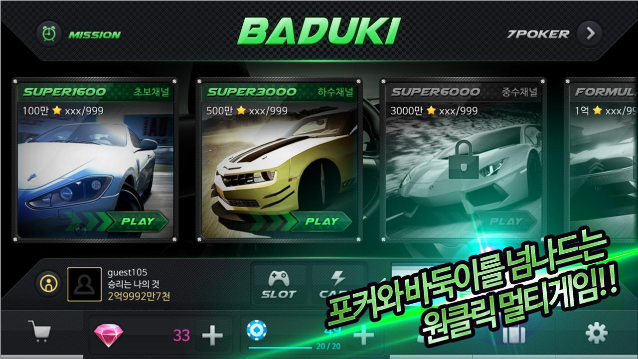 - 하나의 앱을 통해 박진감 넘치고 스피드한 그래픽으로 7포커 바둑이 즐길 수 있습니다.