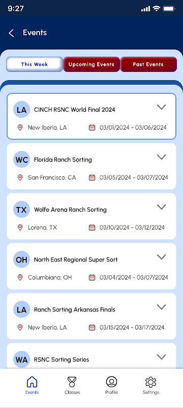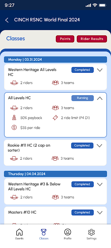 The app provides guest and member access to view Cinch RSNC events with past and real-time updates. Premium members get additional features such as Self Sign-Up to classes.