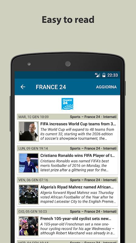* Auto synchronization: Always have the latest news on your device