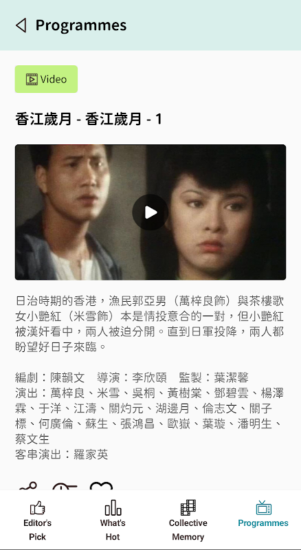 1. User can browse "RTHK Memory" TV and Radio programmes and photos.