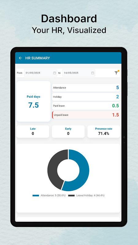 4. Leave & overtime requests: Submit and track leave, overtime, and approval status transparently.