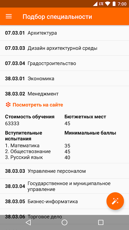 -Подбор специальности по ЕГЭ
