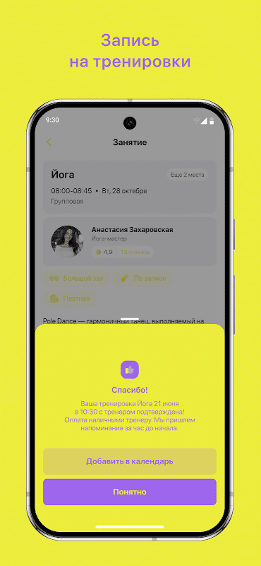 - Записаться на групповые тренировки;