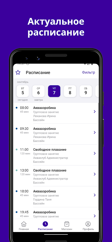 - узнать актуальное расписание и стоимость абонементов;