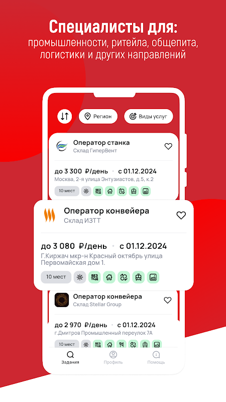 Платформа объединяет работодателей и исполнителей: здесь легко найти работу, опубликовать вакансию, выполнить задание и получить оплату — всё в одном приложении.