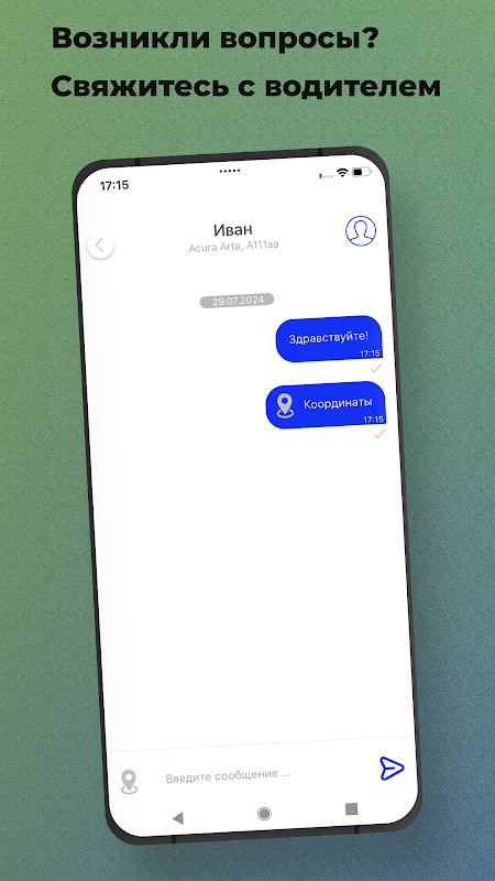 Спросите в чате приложения, где он находится, или отправьте ваши координаты с помощью одной кнопки.