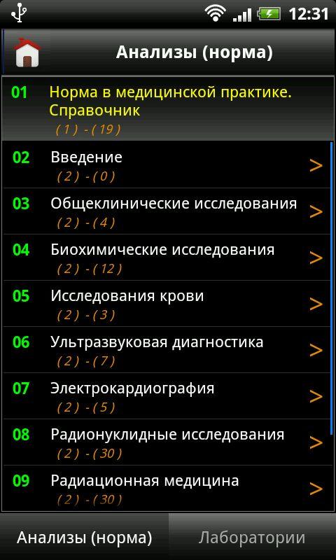 Справочник лабораторных анализов и инструментальных исследований в телефоне.