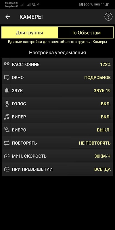 - Для каждой камеры или объекта возможна отдельная настройка звука, голосовой фразы, бипера, превышения скорости и т.п.