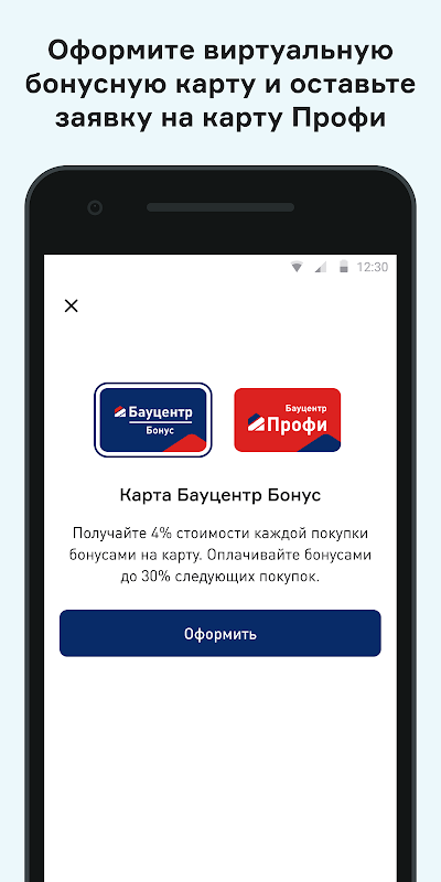 Теперь можно не носить с собой пластик – Ваши карты лояльности «Бауцентр» уже в приложении! Быстрый доступ и к оформлению, и использованию карты происходит полностью в электронном виде. Вы можете удобно следить за баллами и бонусами, видеть историю всех своих покупок и отслеживать состояние интернет заказов прямо в приложении! Мы планируем отказаться от бумажных анкет для регистрации в программе лояльности и пластиковых карт для участия в ней. Это более экологично и отвечает стратегии Бауцентра.