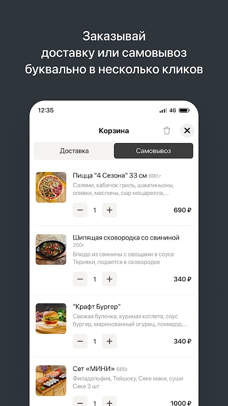 — Быстрый заказ с мгновенным подтверждением через приложение.
