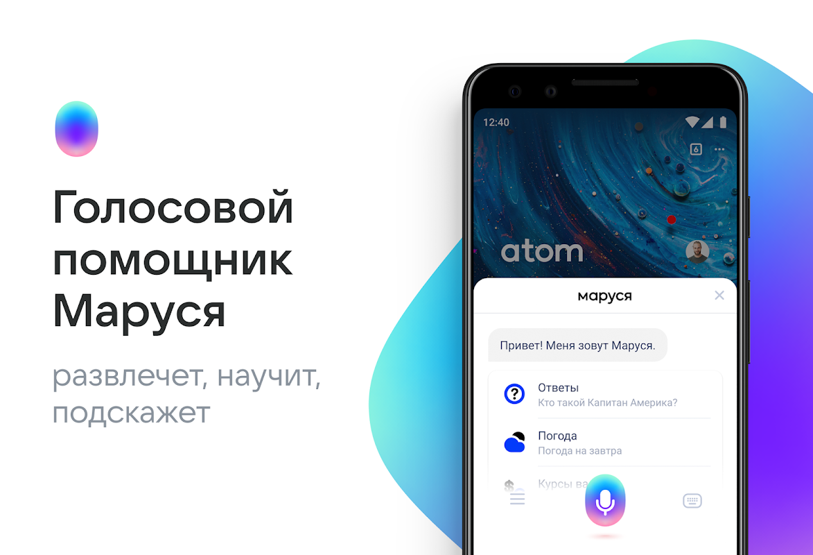 ● Управляйте браузером с помощью голосовых команд. В Atom встроена Маруся — дружелюбный голосовой ассистент. Маруся поможет найти информацию в интернете, откроет сайт, даже если вы точно не помните, как произносится его название, поиграет с вашими детьми в города и расскажет сказку на ночь. И много чего еще! Скажите: «Маруся, что ты умеешь», и помощник расскажет о своих возможностях.