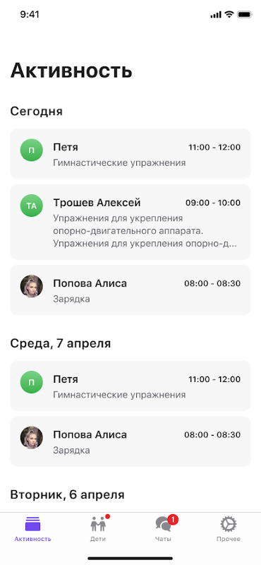 Приложение «Будь в движении!» - расписание дня и тренировки