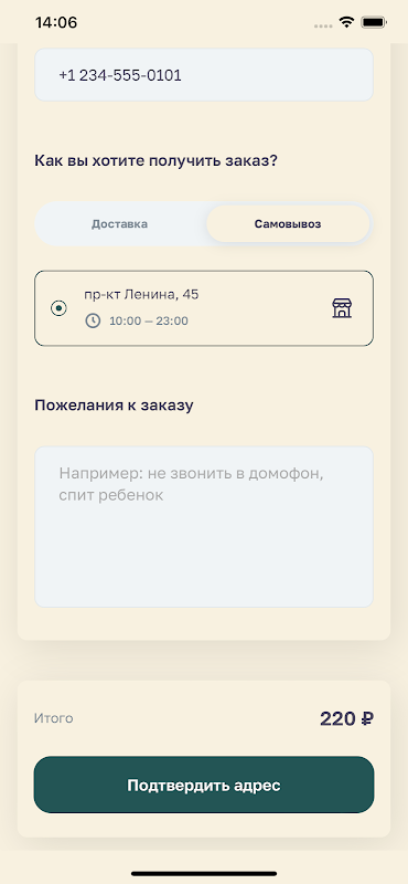 • Курьер привезёт заказ по указанному адресу. Следите за передвижением курьера на карте в реальном времени.
