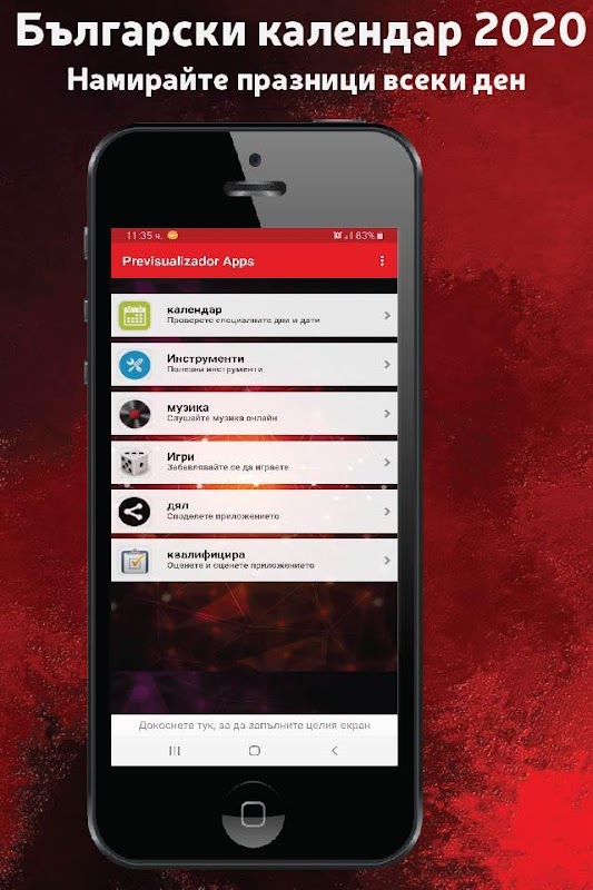 Новото приложение Български календар 2020, намери всички празници, седмици и специални дати в този календар 2020 български (почивни дни 2020), полезно и практично средство за информиране с този календар 2020 (2020 календар) вече е налице в магазина за използване на мобилни устройства с Android.
