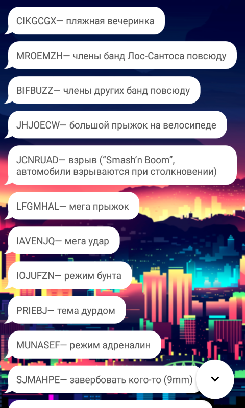 Скачай все коды на Гта Сан Андреас на русском языке бесплатно для андроид!