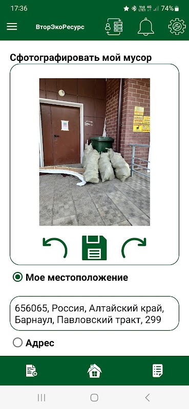 - Отслеживать ход выполнения заказа с получением фото до и после погрузки отходов.