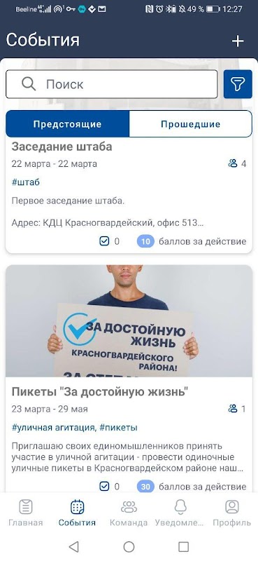 Создайте приватную команду, пригласите в нее своих единомышленников, делайте события для команды, ставьте задачи, оперативно отслеживайте их выполнение, поощряйте членов команды в зависимости от их вклада в общую победу. Получите счетный результат для кампании!