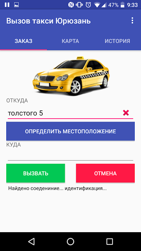 Приложение позволяющее с помощью смартфона вызвать такси города Юрюзань