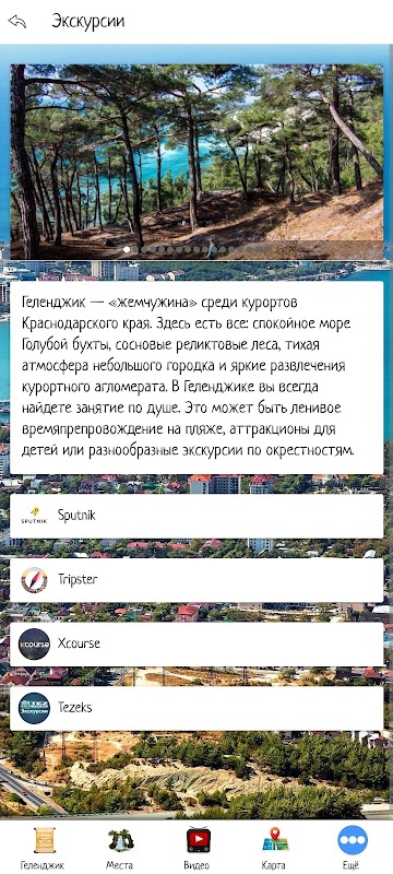 В этом приложении можно совершить первичное знакомство с Геленджиком, выбрать место для путешествия, посмотрев достопримечательности, видео обзоры и отзывы. Также в приложении есть информация об экскурсионных бюро и отелях, предлагающих свои услуги в выбранном городе.