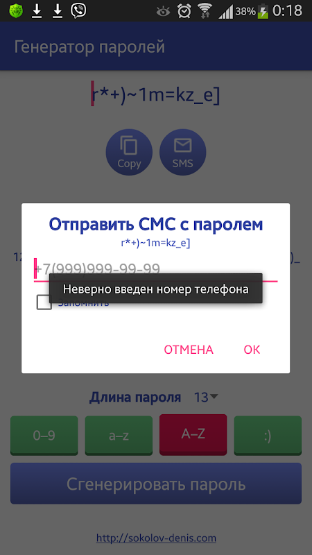 Создавайте надежные пароли, отправляйте их по SMS или копируйте в буфер обмена!