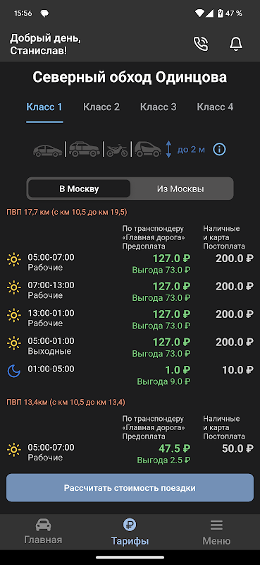 Официальное приложение АО «Новое качество дорог», Оператора платной дороги «Северный обход Одинцова» (Новый выход на МКАД с федеральной автомобильной дороги М-1 «Беларусь» Москва-Минск).