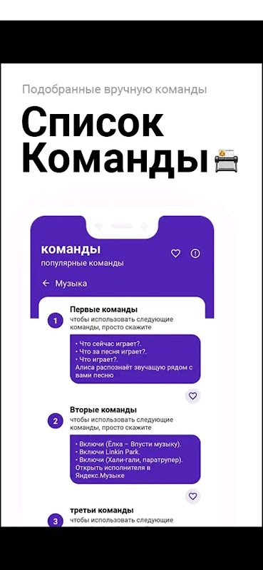 • Данное приложение является руководством для Яндекс Алиса. Все голосовые команды и ответы на них осуществляются в приложениях Яндекс.